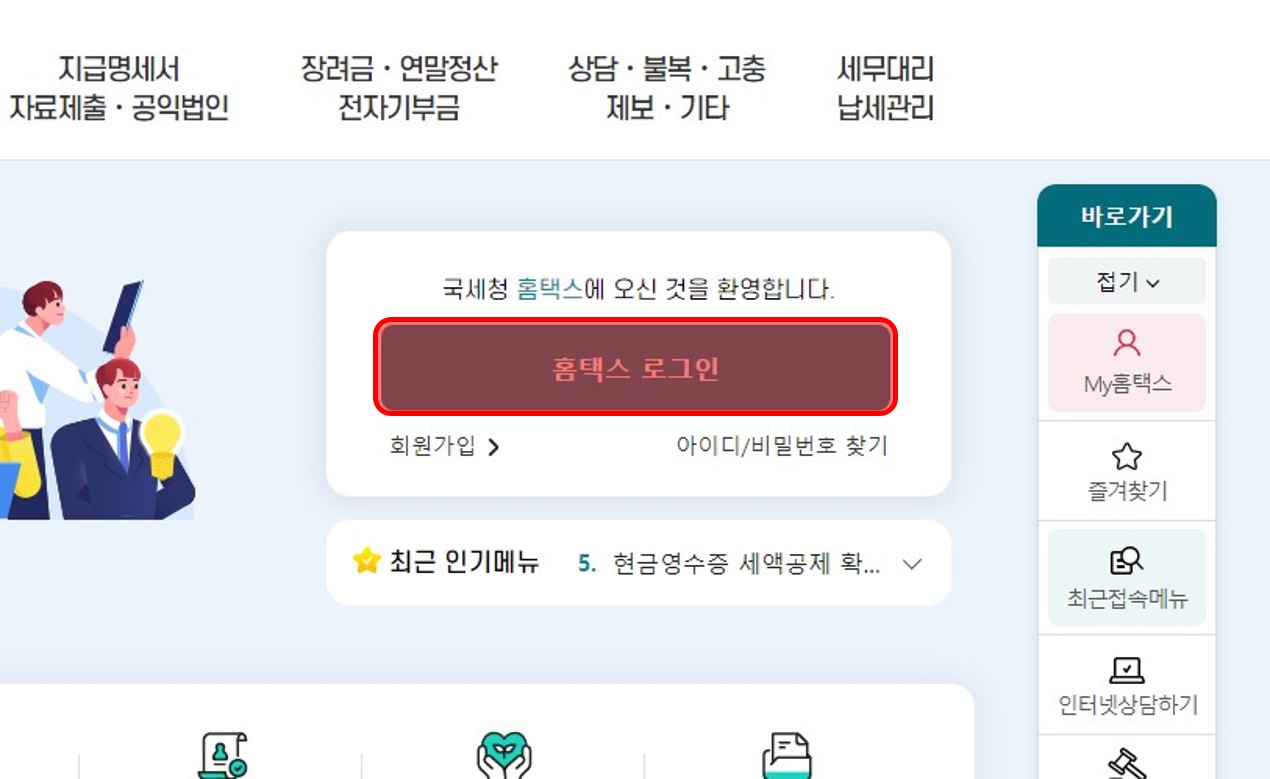 1. 검색창에 [국세청홈택스]를 검색해 사이트(https://www.hometax.go.kr)에 접속합니다.
