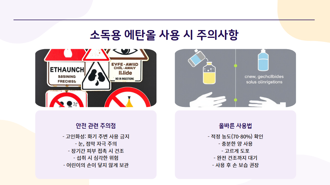 지금까지 소독용 에탄올 다양한 활용법을 살펴봤습니다. 일상 속 작은 사물부터 개인 위생까지, 정말 폭넓게 쓰일 수 있는 물질이에요. 다만, 잘못 다루면 피부 건조부터 화재 위험까지 이어질 수 있으니, 올바른 사용법을 잊지 말아야겠습니다.