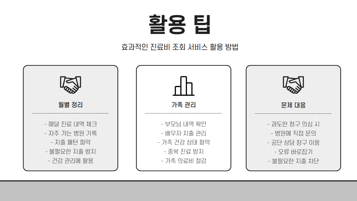 3) 문제 발견 시 대응: 만약 과도하게 청구된 항목이 의심되면, 병원에 문의하거나 공단 상담 창구에 문의할 수 있습니다.