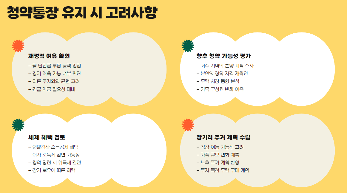 향후 분양을 노리는지, 혹은 다른 형태의 주거 이동을 고려하는지 미리 생각해보세요. 전혀 계획이 없다면 해지하는 것도 방법이 될 수 있습니다. - 세제 혜택