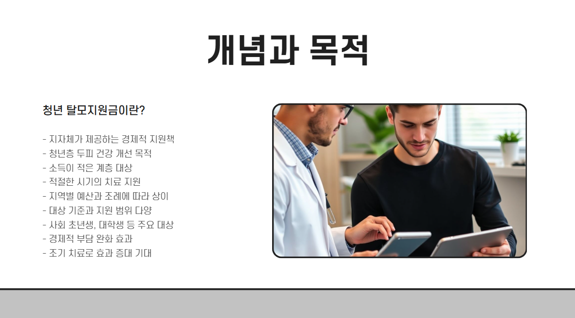 - 주요 개념: 지방자치단체 혹은 일부 단체에서 젊은 사람들의 두피 문제를 완화하기 위해 마련한 경제적 지원책입니다.