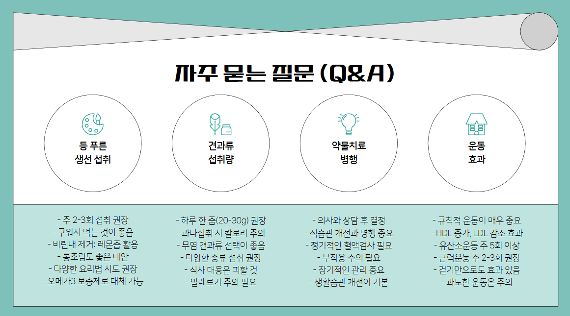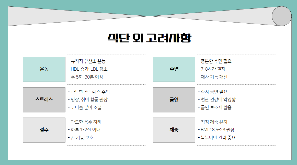 ‘고지혈증 낮추는 음식’을 찾는다면, 결국 평소 식단에서 기름진 식품을 줄이고, 채소·과일·등 푸른 생선을 골고루 섭취하는 것이 핵심입니다. 여기에 규칙적인 운동과 충분한 휴식을 더하면 금상첨화죠. 저는 이 방법으로 콜레스테롤 수치를 꽤 낮출 수 있었고, 전체적인 컨디션도 한층 좋아졌습니다. 처음부터 너무 무리하지 말고, 한 끼씩 바꿔보는 방식으로 시작해보세요.