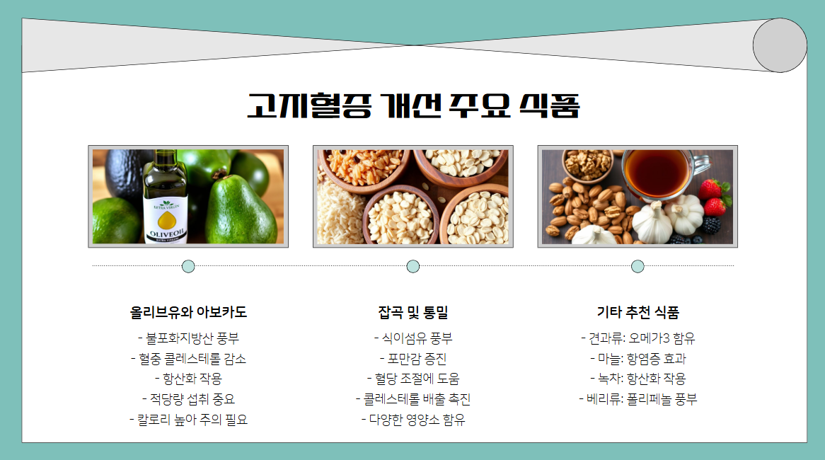 안녕하세요. 오늘은 ‘고지혈증 낮추는 음식’을 주제로 이야기해보려 합니다. 요즘 혈중 지질 이상으로 고민하는 분들이 적지 않은데요, 이 문제는 심혈관 질환 위험도 높일 수 있으니 미리 대비해야 합니다. 사실 저도 예전에 정기검진에서 콜레스테롤 수치가 정상 범위를 넘어간 적이 있었습니다. 그때 의료진이 “식단부터 바꿔보는 게 어떻겠느냐”라고 조언해주셨고, 조금씩 습관을 고치며 수치를 개선할 수 있었어요.