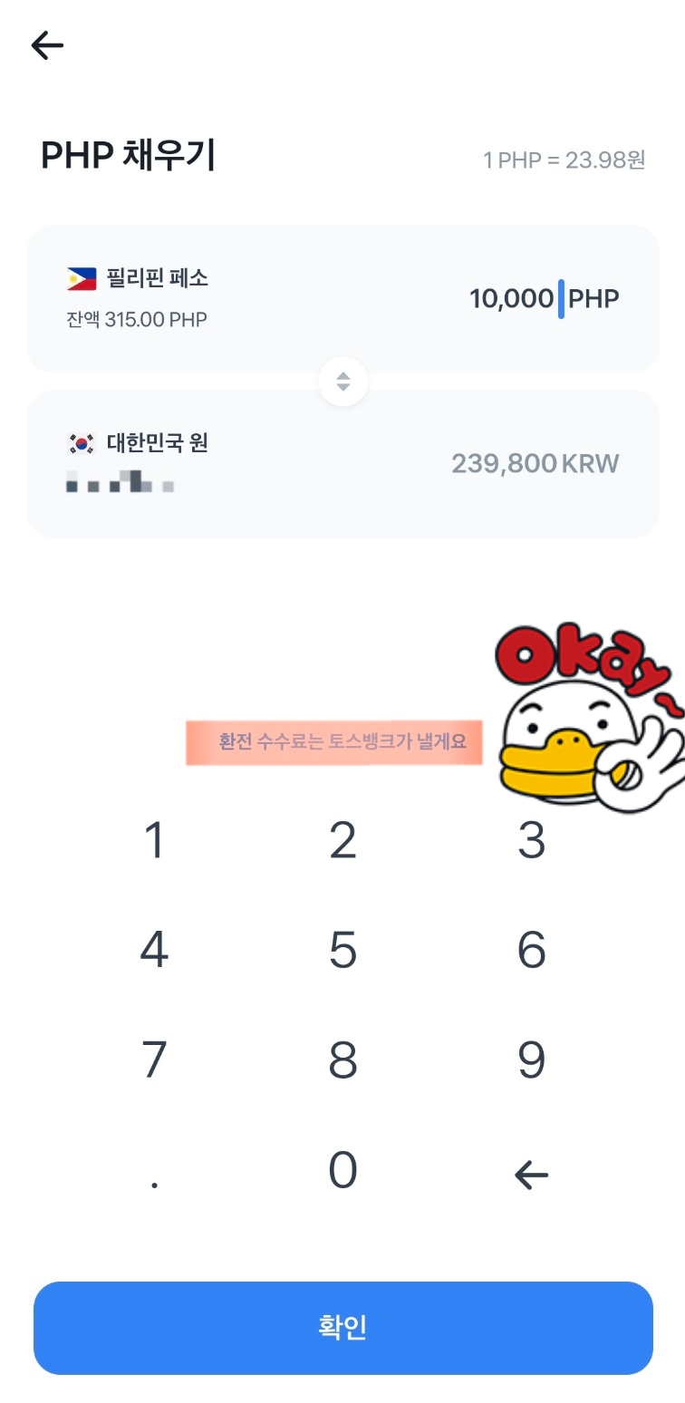 저희는 토스뱅크카드 외화통장에 환전되어 있는 페소를 출금하는 것이기 때문에