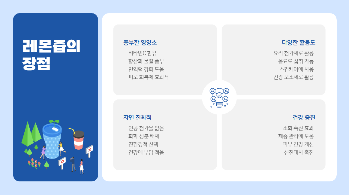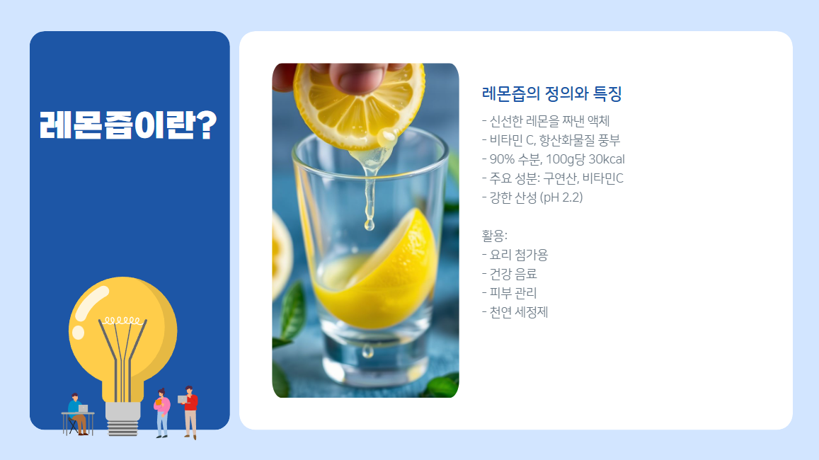 바쁜 일상 속에서 간편하게 건강을 챙기기 위해 아침마다 레몬즙을 섭취하기 시작했습니다. 한 달간 꾸준히 실천한 결과, 면역력이 강화되어 감기에 덜 걸리고, 피부도 한층 더 밝아지는 것을 느꼈습니다. 또한, 소화가 원활해져 식사 후 불편함이 줄어들었고, 체중 관리에도 큰 도움이 되었습니다. 이처럼 레몬즙은 일상 속에서 다양한 방법으로 활용되며, 여러 방면에서 긍정적인 효과를 가져다줍니다.