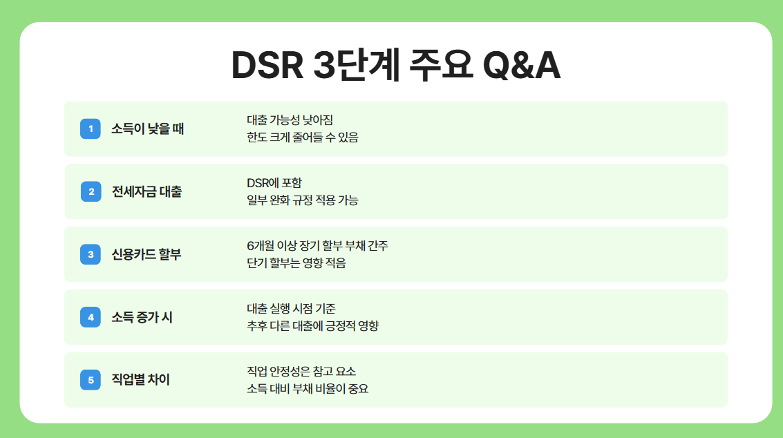 “DSR 3단계”의 도입으로 인해 대출 문턱이 크게 올라간 건 사실입니다. 하지만 이는 가계 부채가 과도하게 늘어나는 것을 막고, 개인 파산 위험을 줄이기 위한 조치이기도 하죠. 중요한 건 내가 현재 감당할 수 있는 부채 수준이 얼마인지 미리 파악하고, 그에 맞춰 대출 전략을 세우는 것입니다.